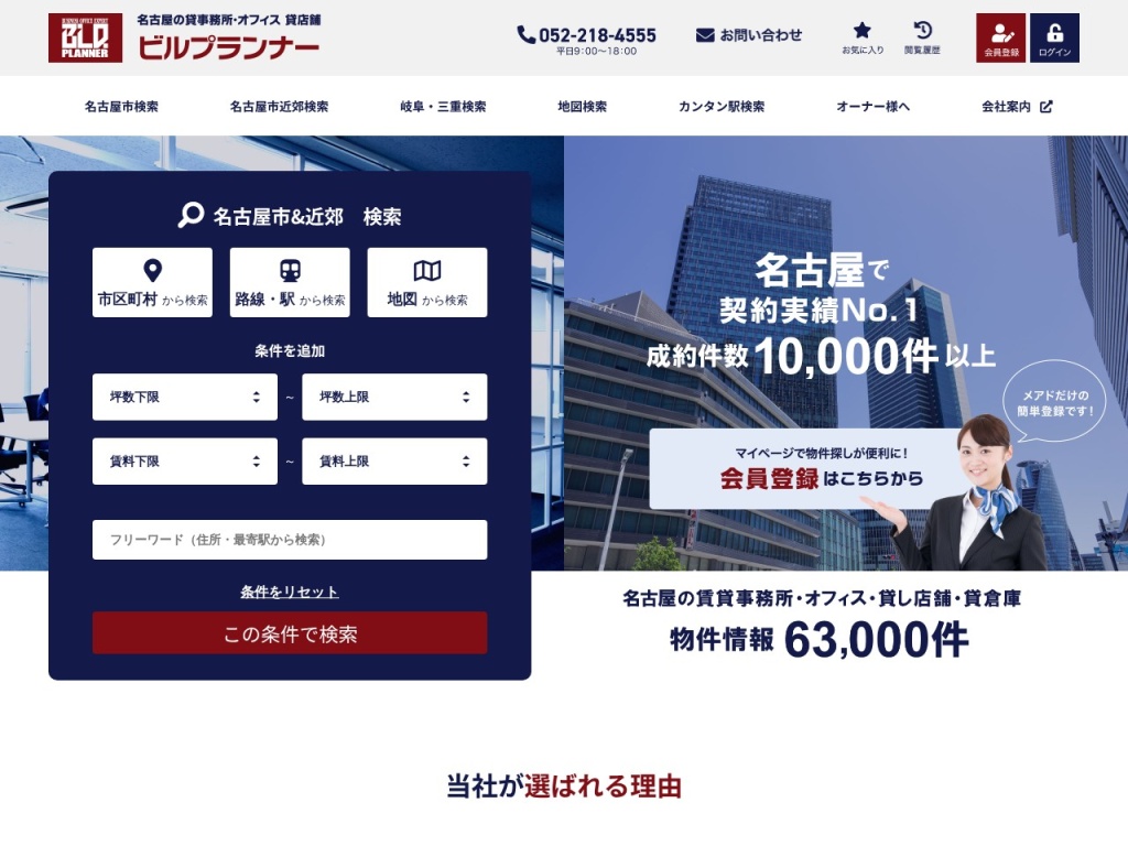 | 製造業(営業所) | 名駅エリア | 新幹線でのアクセスが良く、全国の取引先との商談に最適 |